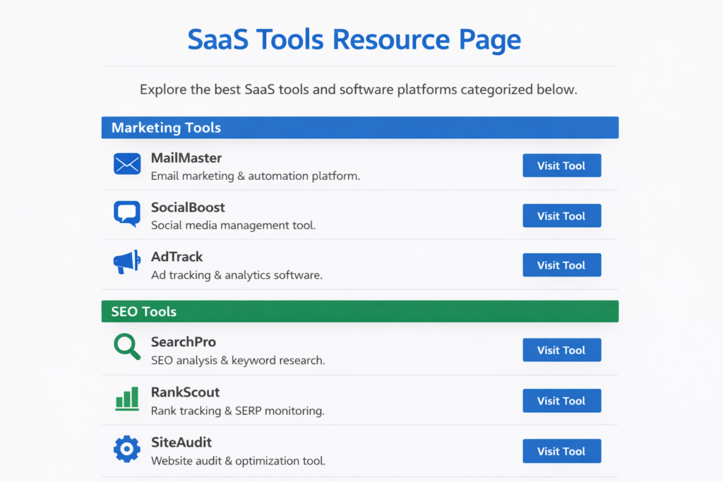 Many websites maintain pages that list useful tools and resources.